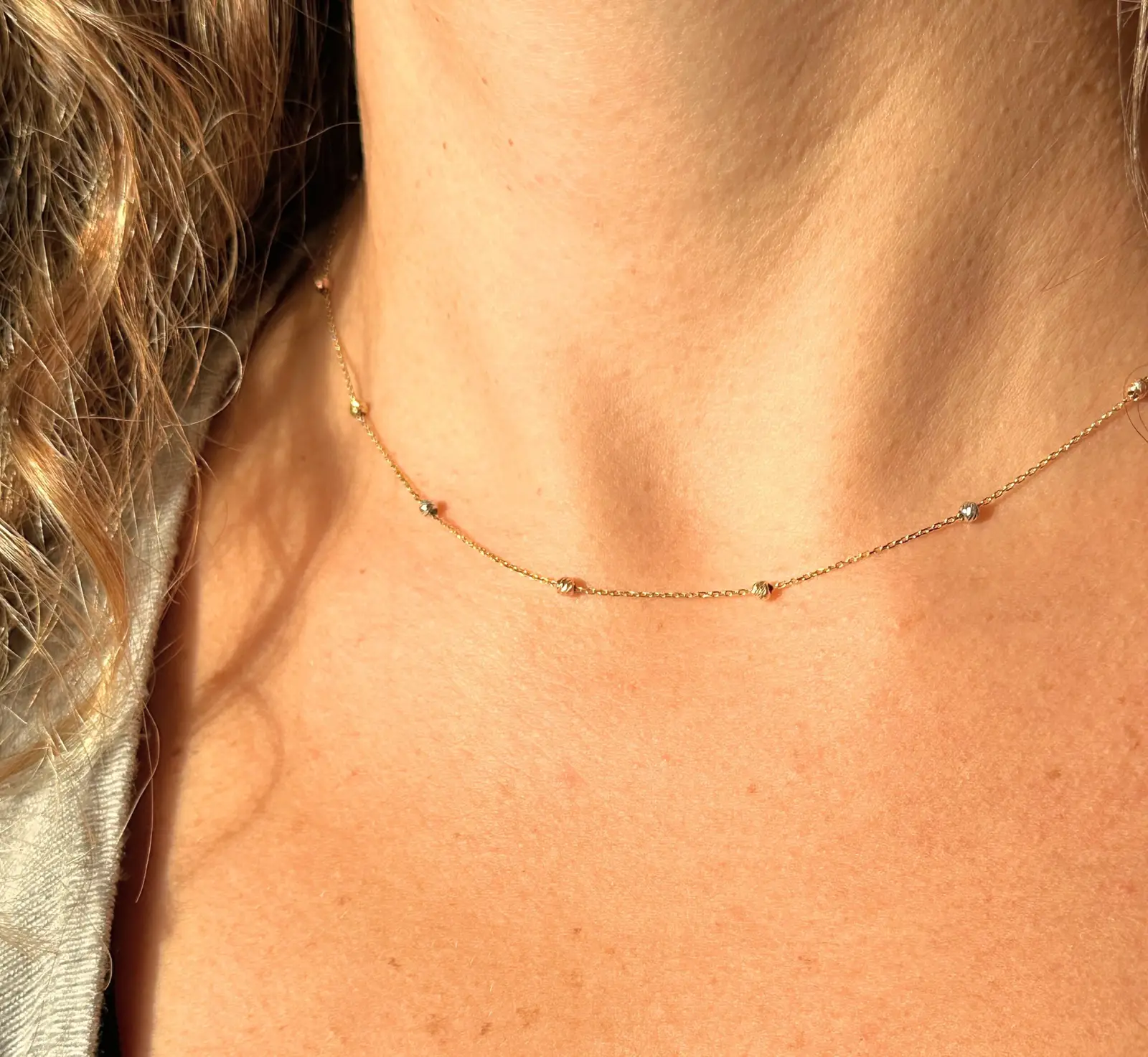 This delicate chain features exquisite mixed gold balls that catch the light beautifully. Ideal for stacking or wearing solo.